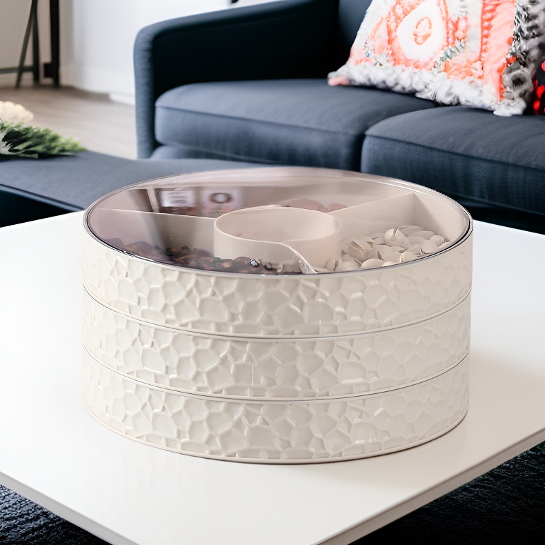 ● 다기능 디자인으로 견과류, 과일, 간식 등 다양한 음식 보관과 서빙이 한 번에 가능해 거실 생활을 더욱 편리하게 만들어줍니다.
